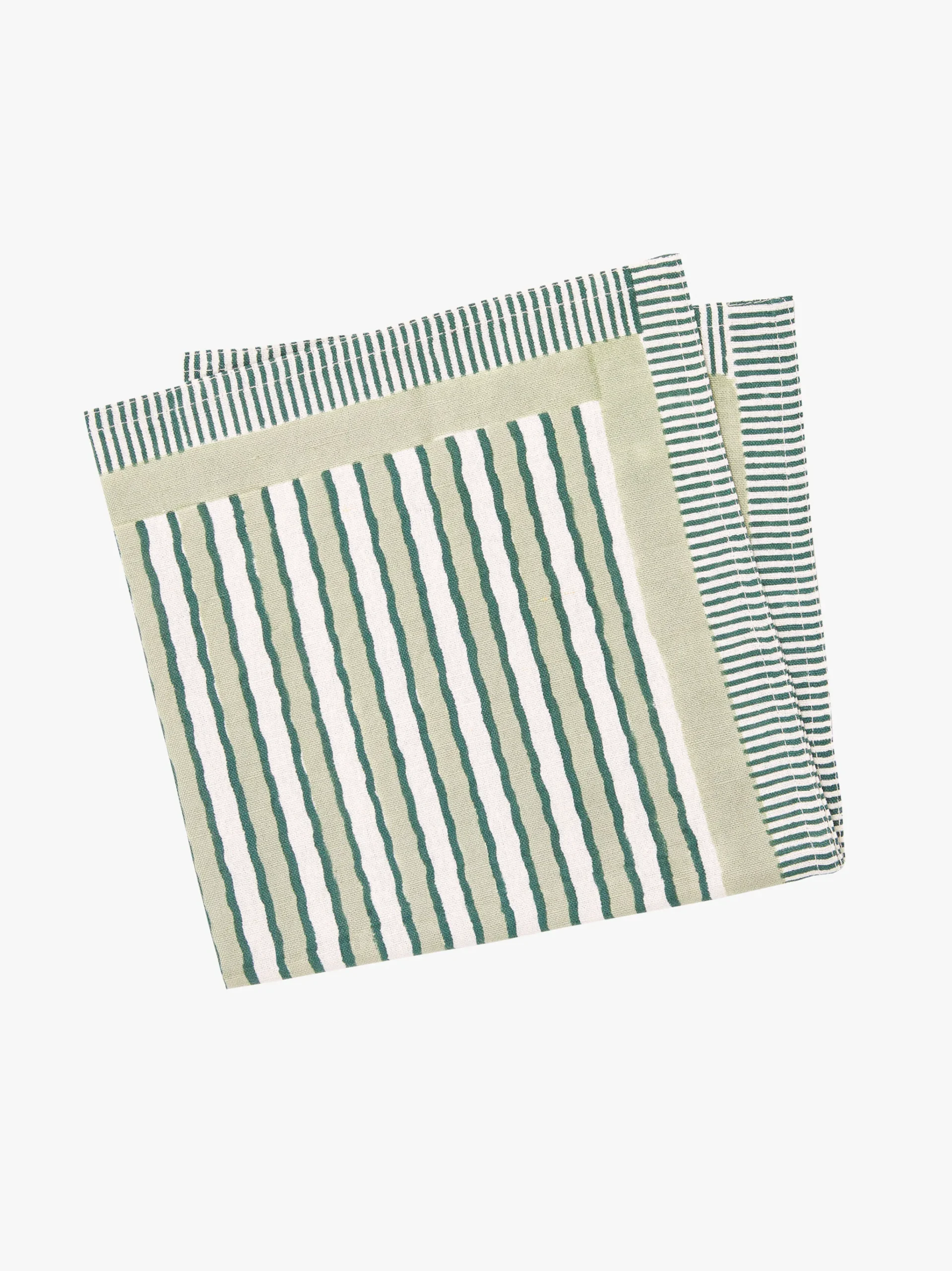 Elevate your table this season with our beautiful, hand block printed Algarve collection. Hand-crafted by highly skilled artisans, this painterly stripe design sets a stunning foundation for everyday dining and summer entertaining. Available in 2 colourways; Aloe or Ocean.