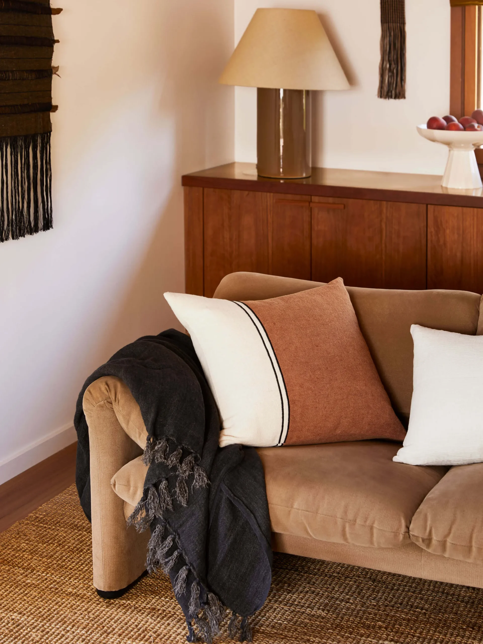 A matching throw complements this timeless collection, available in Chalk, Fossil, Navy, Nougat and Stripe.