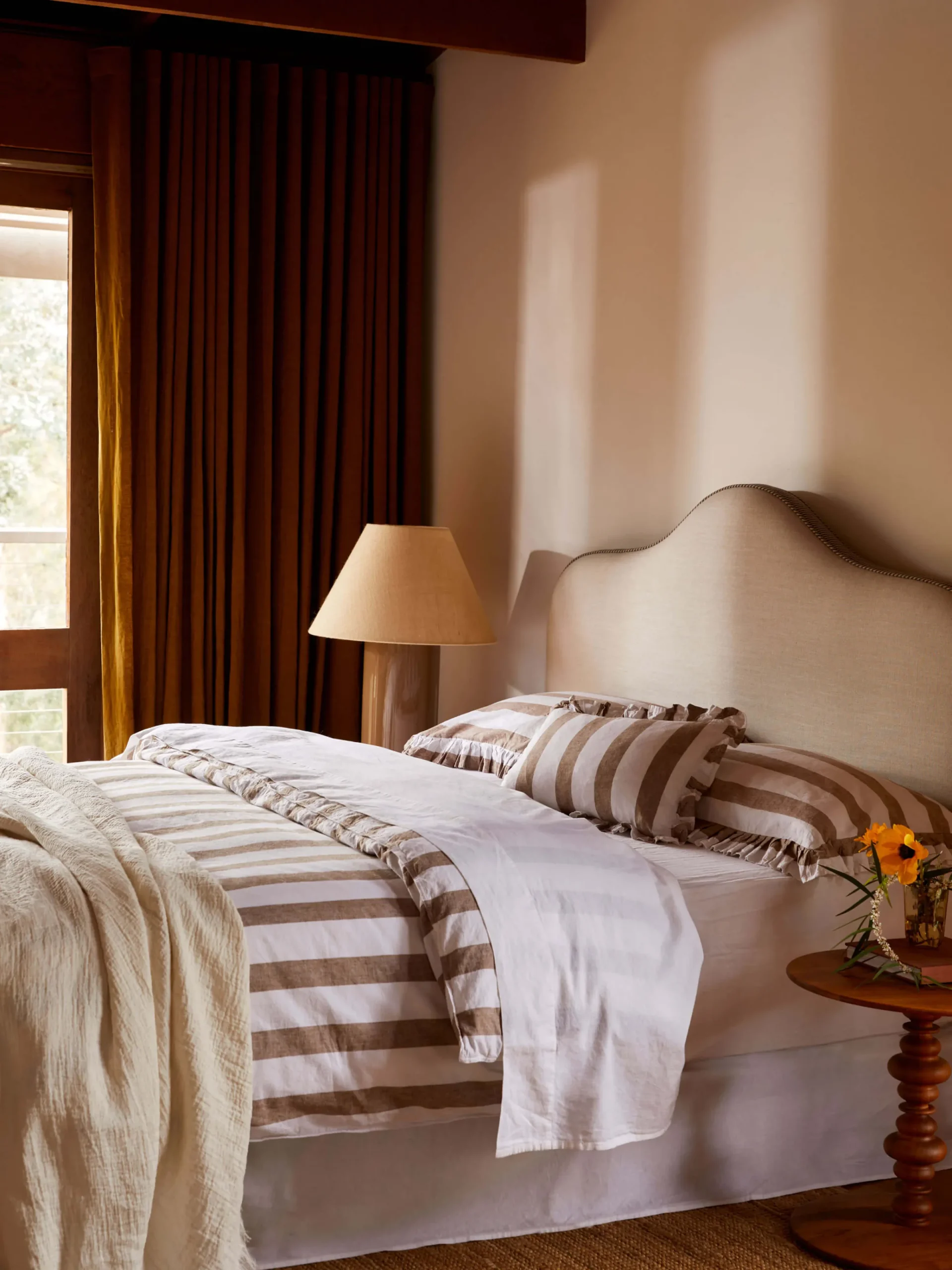 Each Sheet Set is crafted from 55% French linen and 45% cotton, pre-washed for softness. The pillowcases included feature a simple envelope closure at the back. Our sets come in their own drawstring bag for convenient storage.