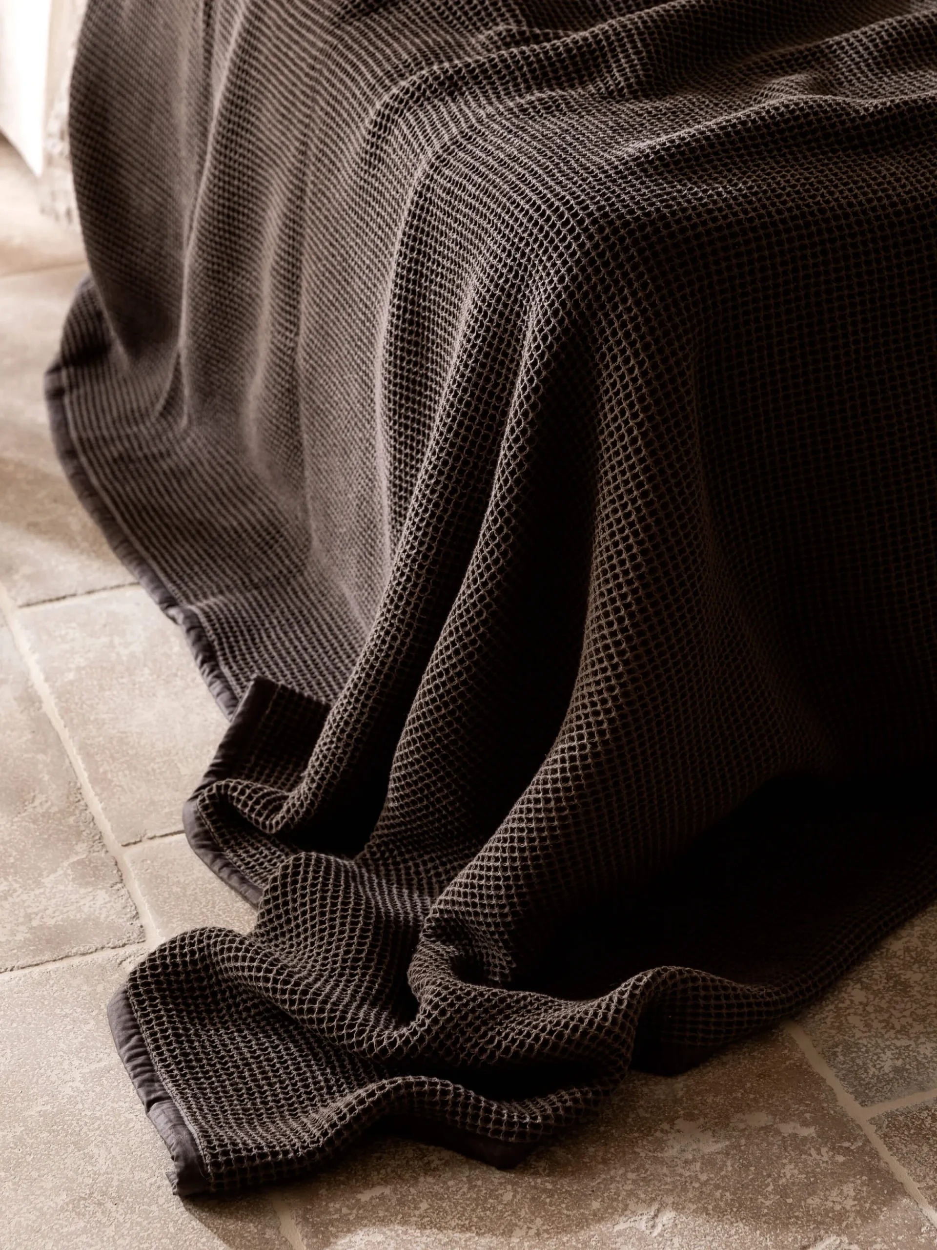 Super versatile and naturally breathable, our Isla Blanket is perfect for cool summer nights or adding an extra layer of warmth during the Winter months. Crafted with 550 GSM pure cotton and woven in India, the textured waffle design has been stonewashed for extra softness. Finished with a simple hemmed edge, it’s an effortless way to add texture and comfort to your bed or sofa.