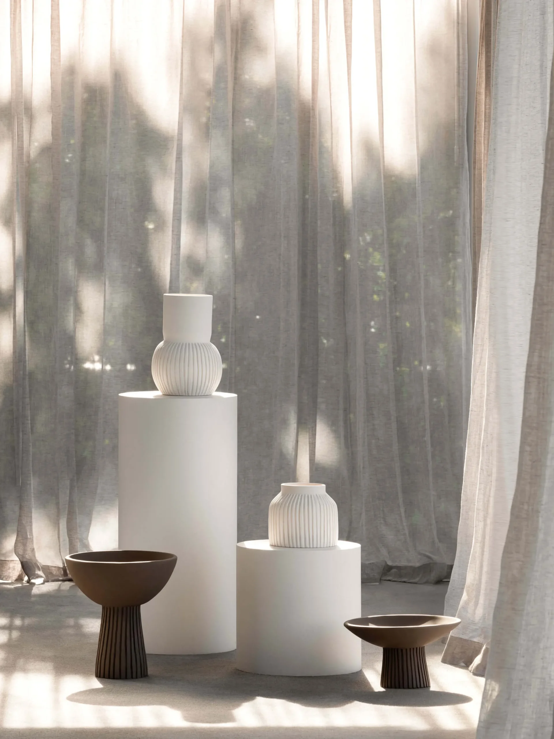 Our new vessel collection champions traditional craftsmanship and raw characteristics of the handmade. Consisting of five stoneware items in three different colours, sculptural silhouettes combine with fluid lines for an organic feel that ensures no two items are the same.