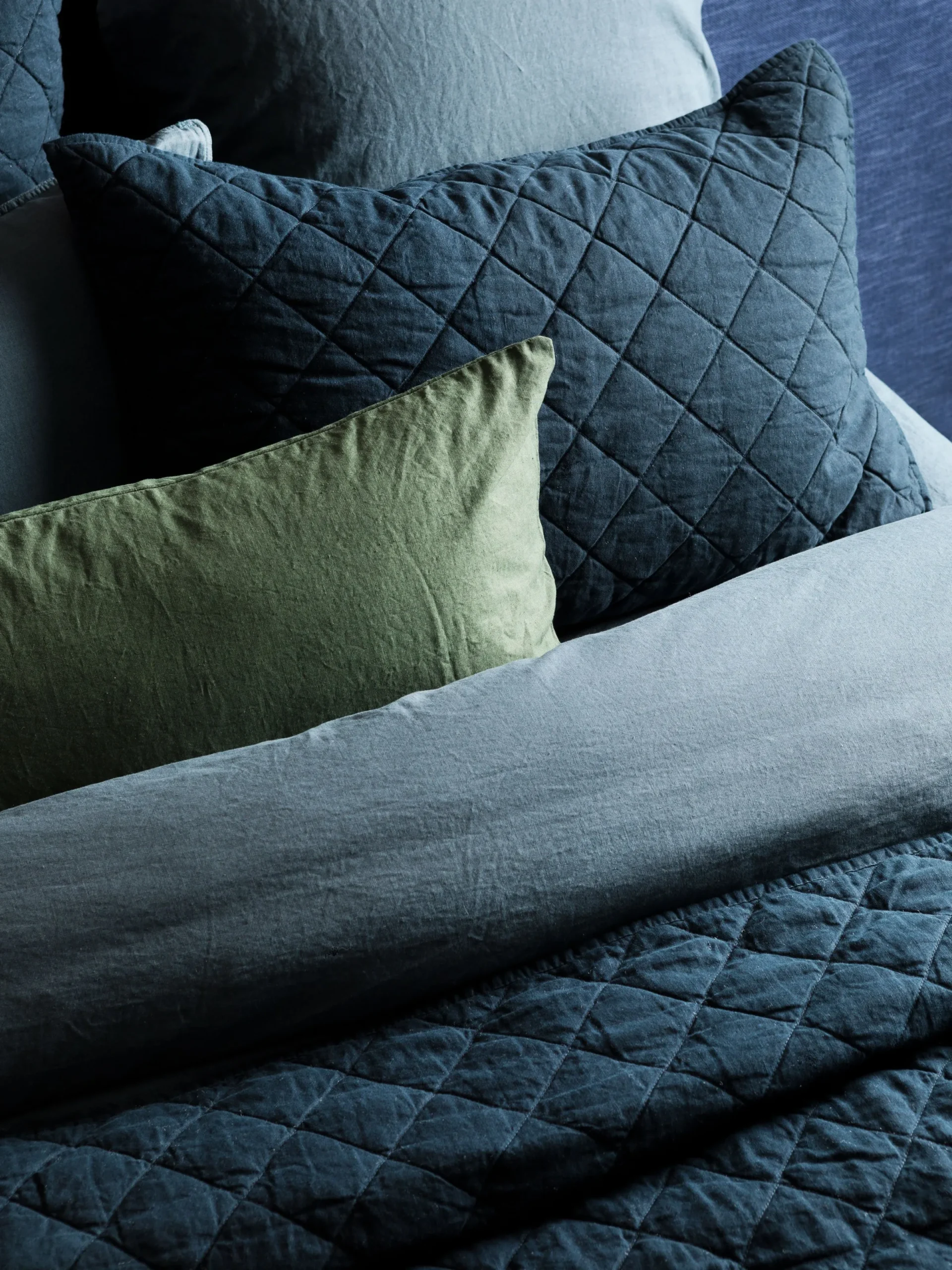 Our luxurious Soho collection is meticulously hand-quilted with diamond stitching for a timeless and sophisticated aesthetic. Crafted from a premium blend of 55% linen and 45% cotton for optimal breathability, durability, and comfort. Available in Cloud, Navy, Nougat, Oatmeal and Chocolate.