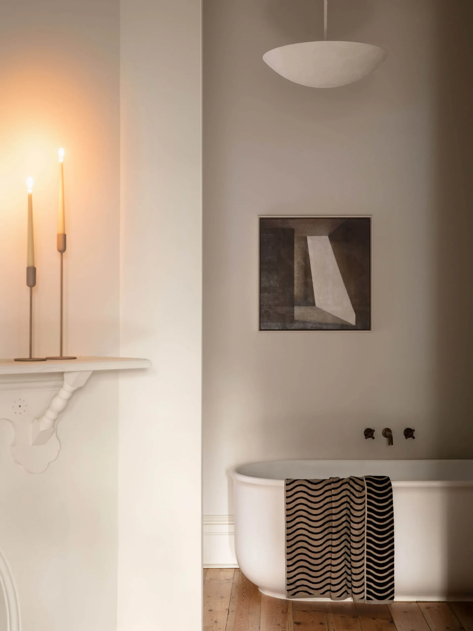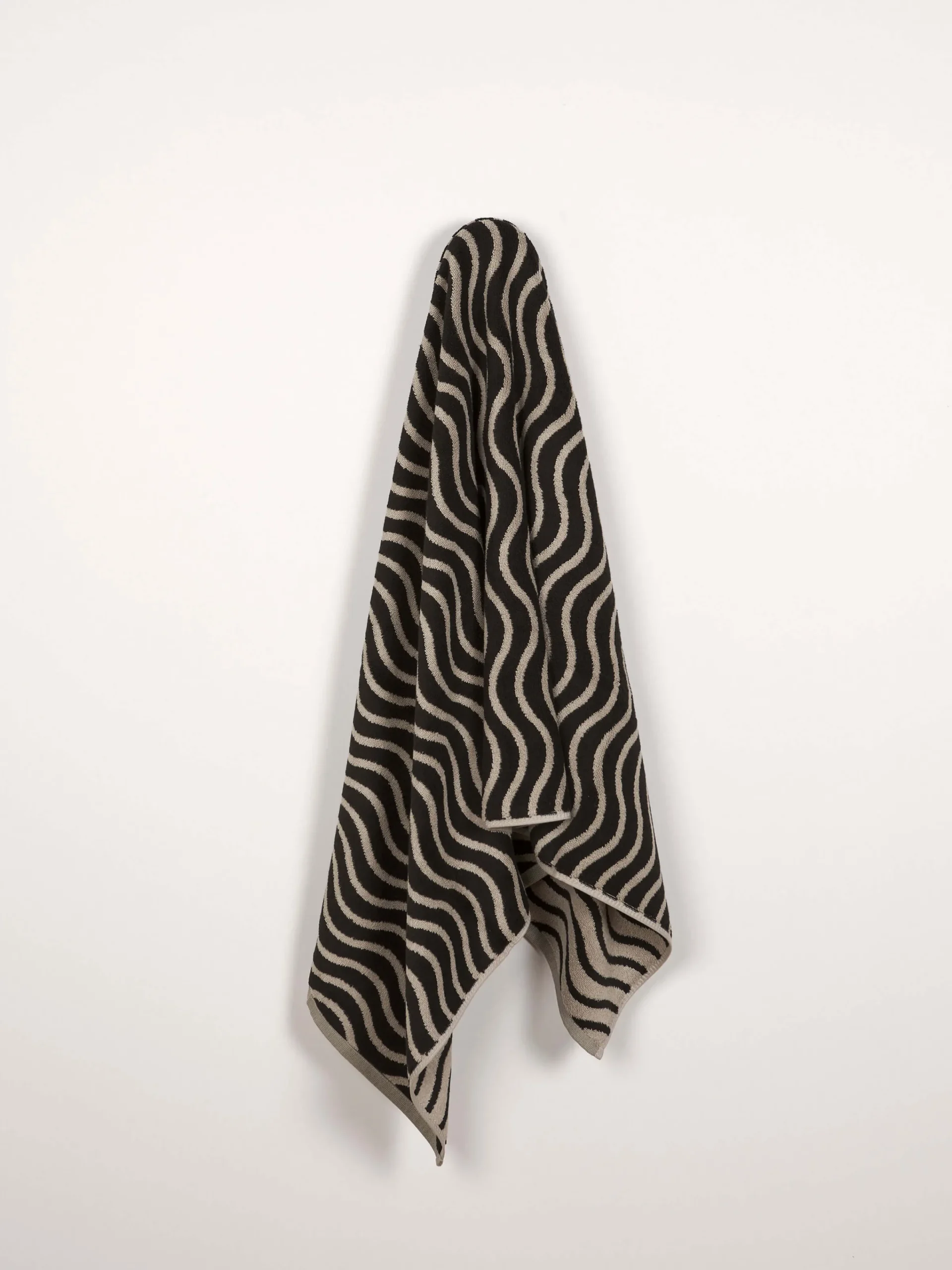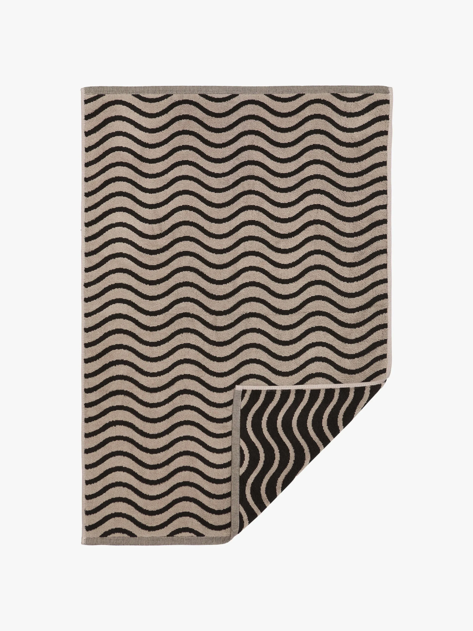 Made from ultra-soft and absorbent 650gsm cotton, this playful range features a reversible colourway. The soft Natural wave contrasting against Black makes a subtle statement in any bathroom, by the pool or at the beach.