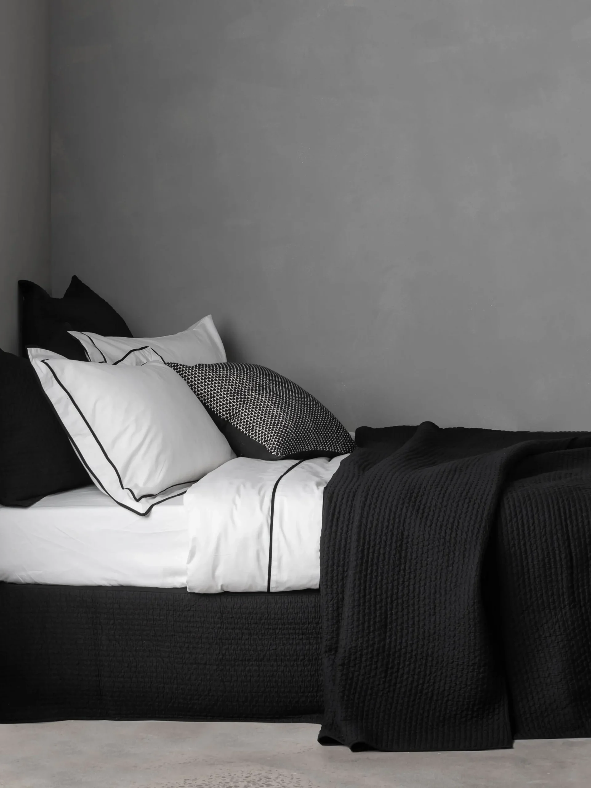 Our versatile Aspen range can be used in contemporary or classic styling, making it a timeless addition to any bedroom. Available in quilts, quilted pillowcases, runners and valances which are made from pure cotton and feature a textural stitch detail. Available in five neutral colour ways: White, Black, Charcoal, Flax, and Brulee.