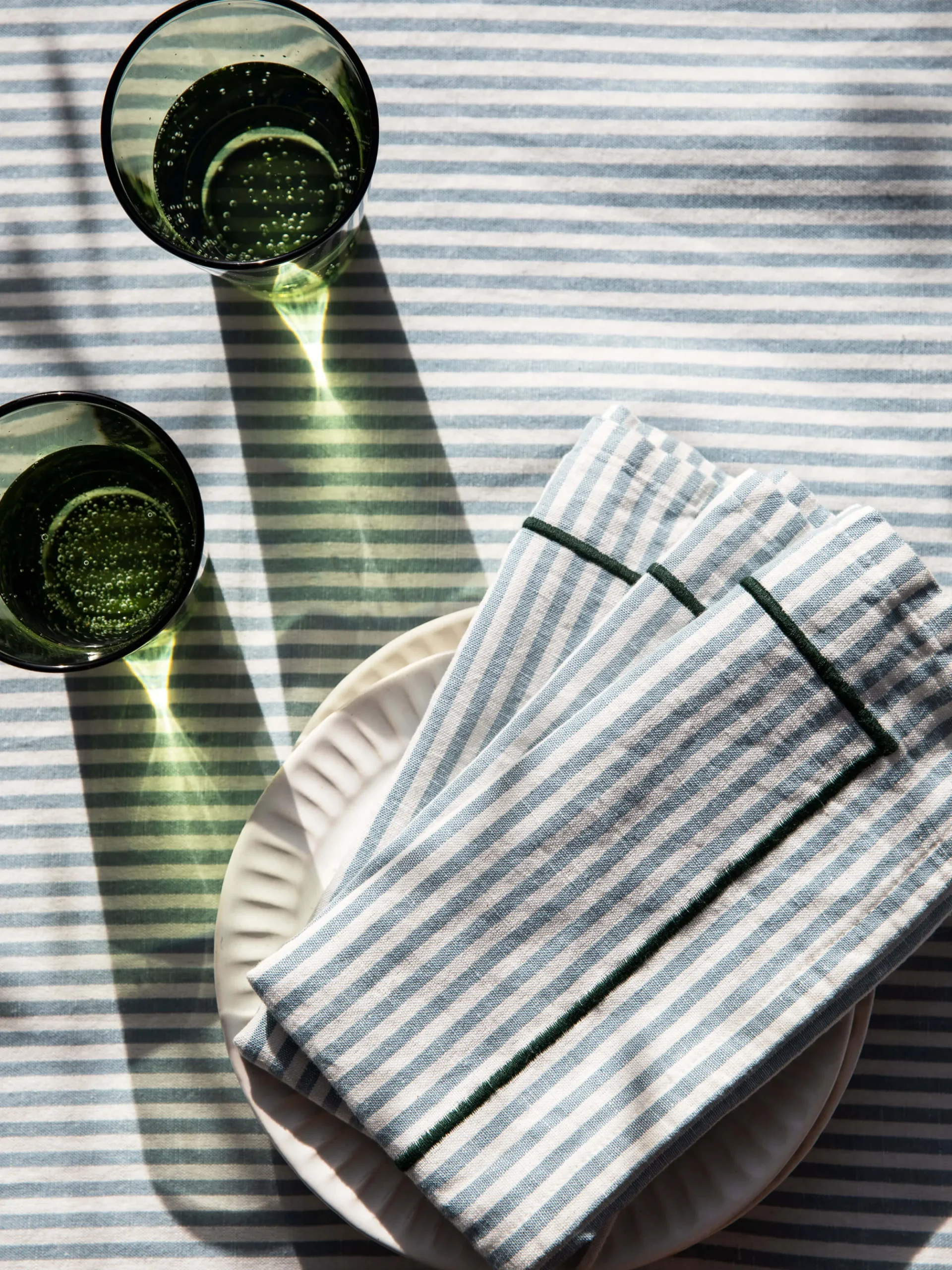 Perfect for everyday dining or effortless entertaining, elevate your table with our Faro collection. This timeless woven striped design is crafted from a luxurious blend of organic cotton and linen, with a contrast embroidered border.