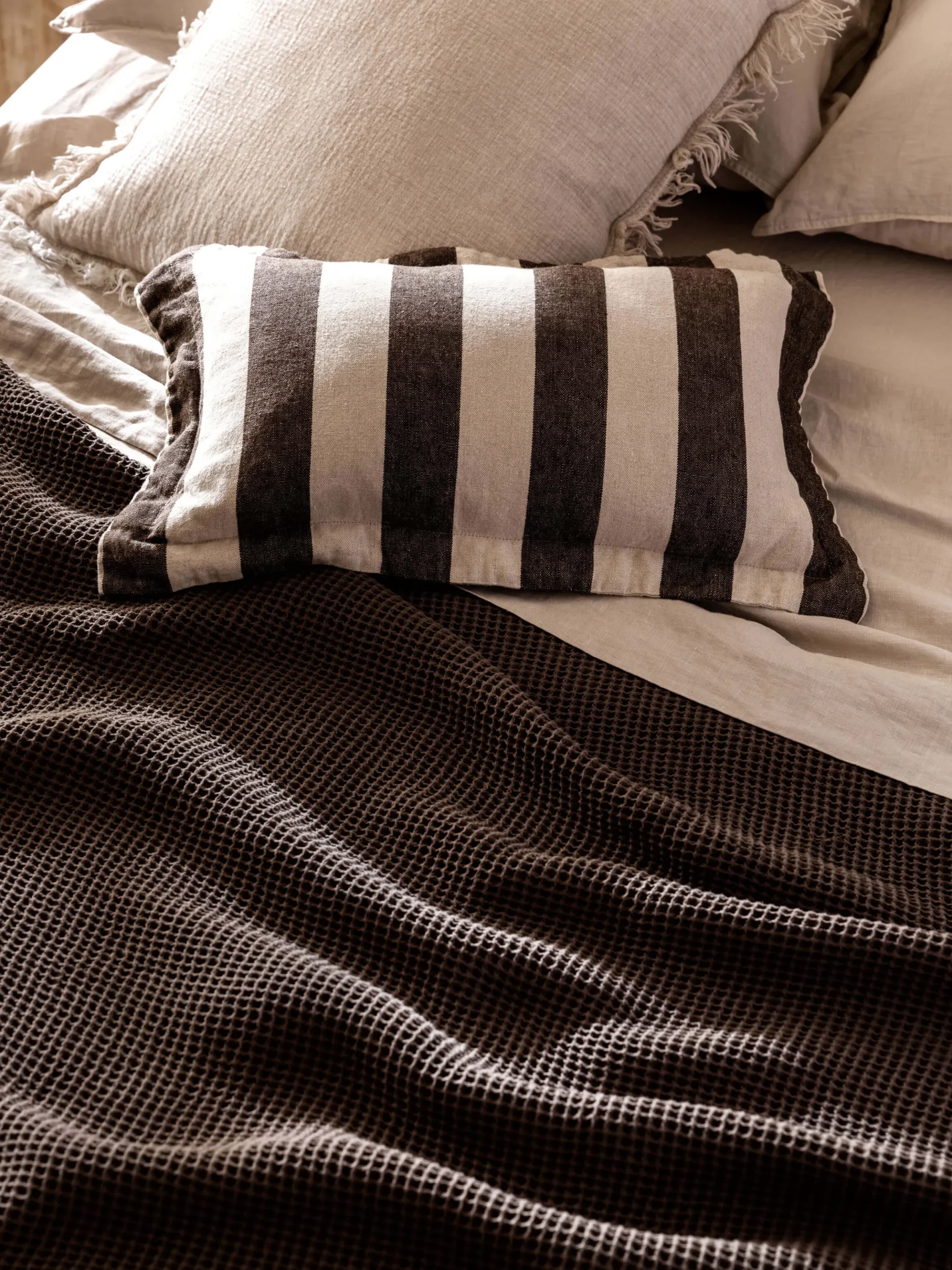 Super versatile and naturally breathable, our Isla Blanket is perfect for cool summer nights or adding an extra layer of warmth during the Winter months. Crafted with 550 GSM pure cotton and woven in India, the textured waffle design has been stonewashed for extra softness. Finished with a simple hemmed edge, it’s an effortless way to add texture and comfort to your bed or sofa.