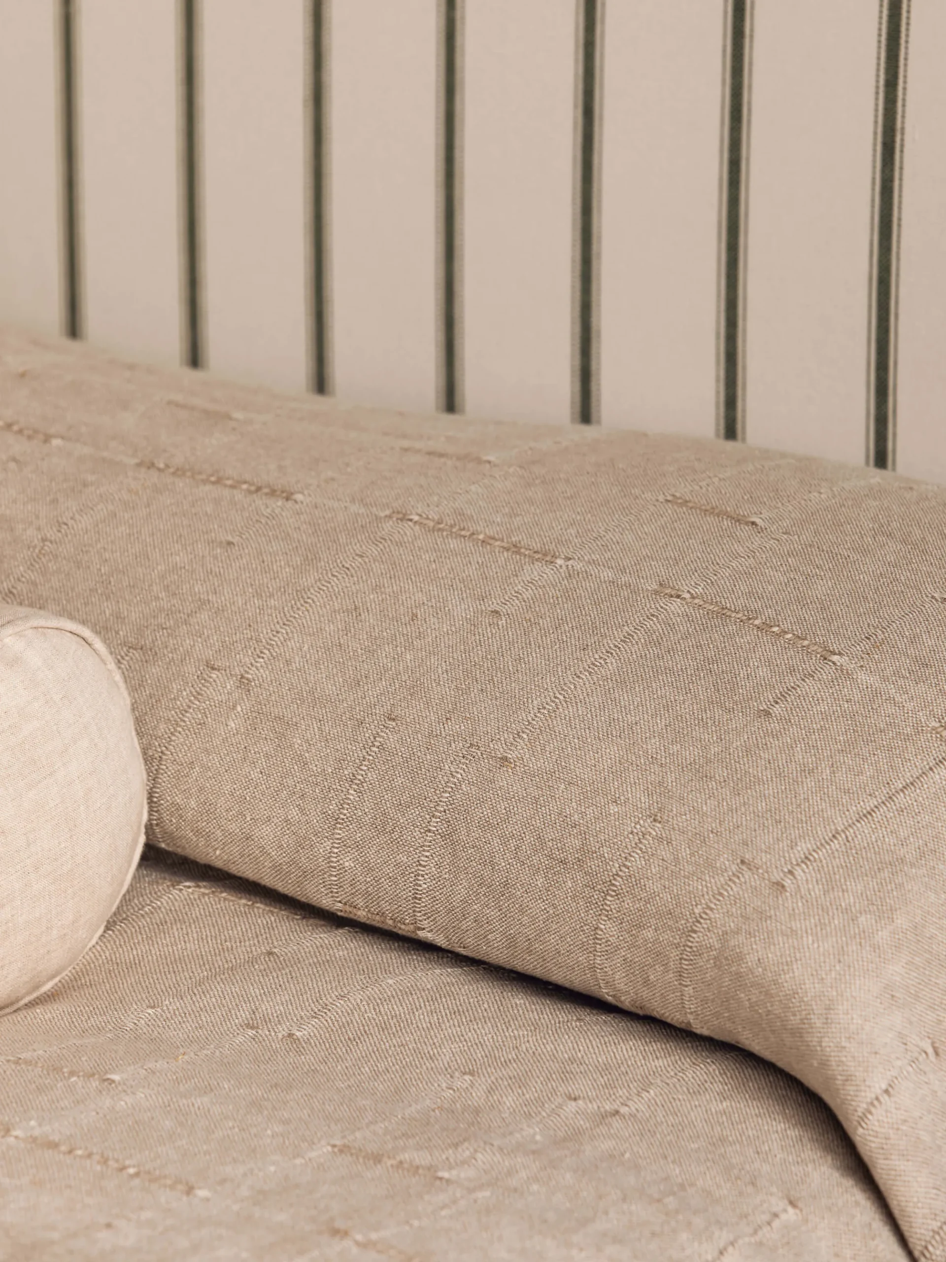 A wonderful choice for adding texture to the bedroom, our Palermo bedcover is woven on a traditional hand loom in heavy-weight 380gsm European linen to create a beautifully refined slub design. The handmade nature of this linen means each piece is totally unique. A lightweight layer, it is perfect for dressing the bed with a flat sheet in place of a duvet on warmer nights.