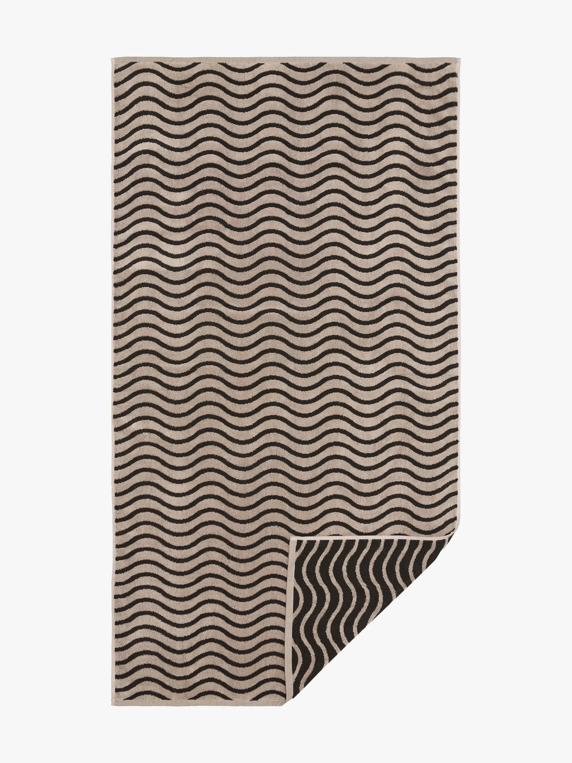 Made from ultra-soft and absorbent 650gsm cotton, this playful range features a reversible colourway. The soft Natural wave contrasting against Black makes a subtle statement in any bathroom, by the pool or at the beach.